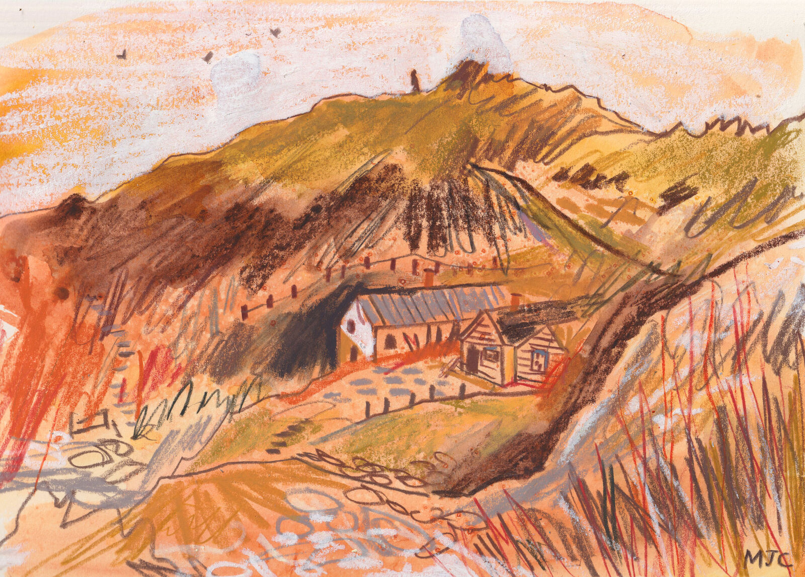 Framed Original Abandoned Cottages at Kynance Cove Lizard Peninsula