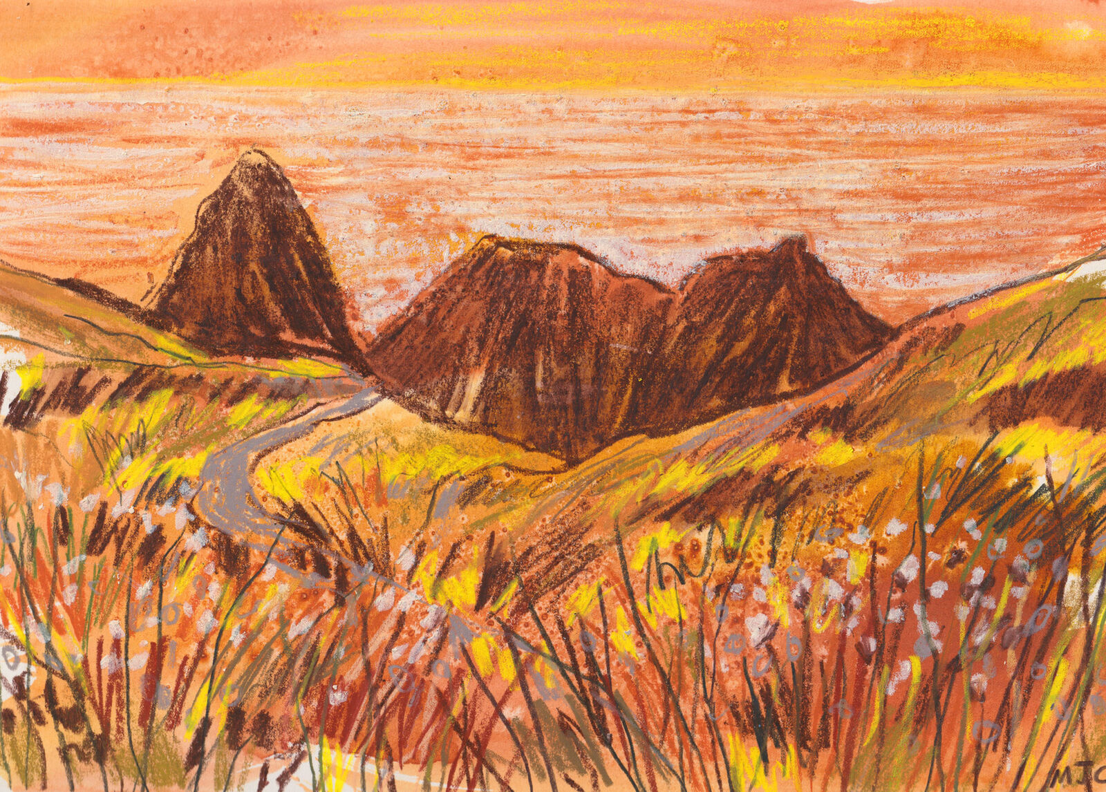 Framed Original Lizard Landscape Coastal Path Evening Walk No. 2